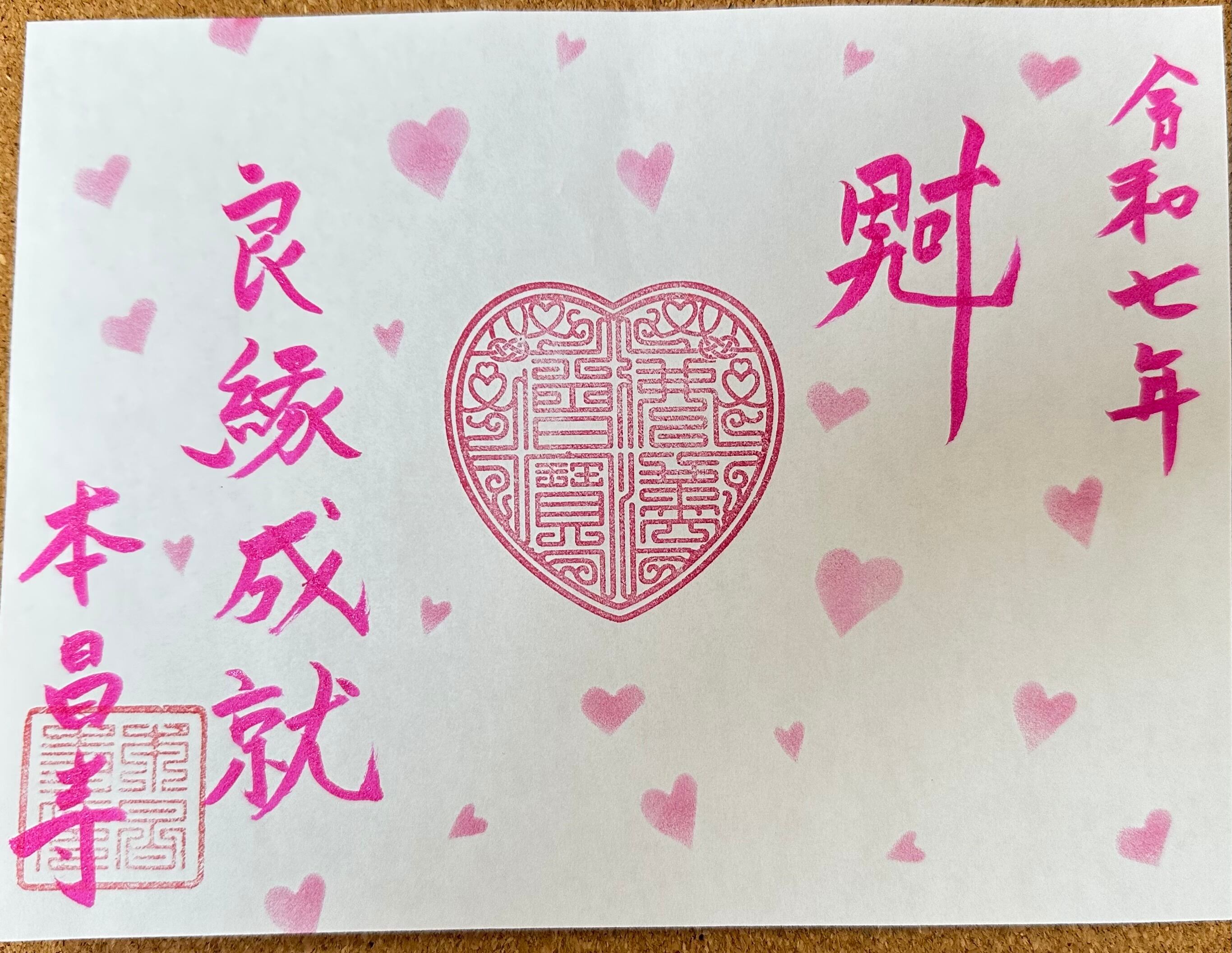 ハート御朱印(良縁成就御朱印)見開きタイプです。